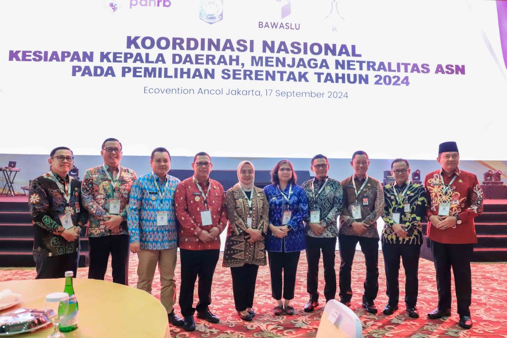Seputar Bogor – Penjabat (Pj) Wali Kota Bogor, Hery Antasari, mengikuti Koordinasi Nasional Kesiapan Kepala Daerah Menjaga Netralitas Aparatur Sipil Negara (ASN) pada Pemilihan Serentak 2024 yang diselenggarakan oleh Badan Pengawas Pemilu Republik Indonesia (Bawaslu RI) di Ecovention Ancol, Jakarta, Selasa (17/9/2024).